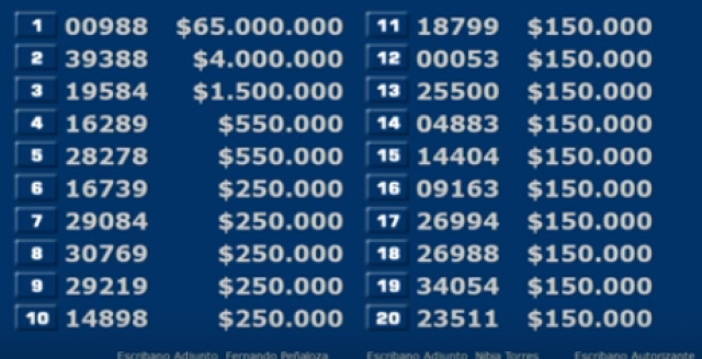 Foto: Captura emisión de la Dirección de Loterías y Quinielas.