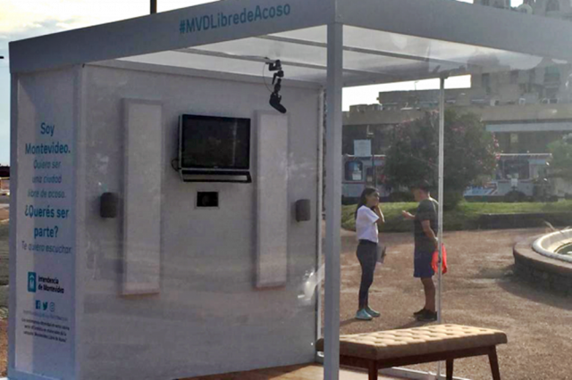 En la cabina itinerante se invita a dialogar y opinar sobre el problema del acoso sexual en los espacios públicos, para poder escuchar posibles planteos y propuestas.