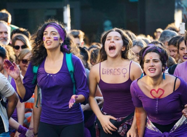 Ahora: Movilización #DiaInternacionalDeLaMujer por Avenida 18 de julio. pic.twitter.com/Q3INCBrcFg