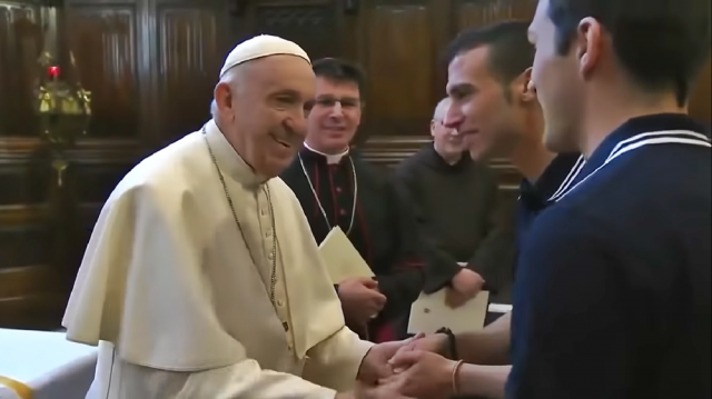 En un video difundido por el corresponsal en Roma de la emisora católica EWTN, Edward Pentin, se ve cómo el Papa aparta la mano cada vez que alguien se agacha para besar la sortija, al punto que los últimos de la fila optan por no repetir el gesto.