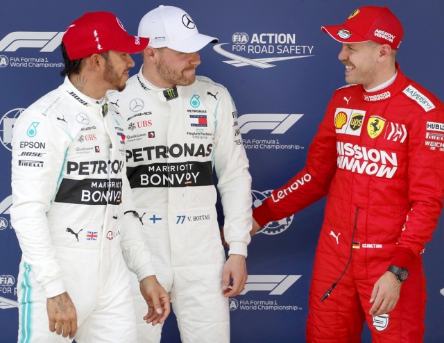 Tras los Mercedes mañana saldrán en segunda fila los Ferrari del alemán Sebastian Vettel, cuatro veces campeón del mundo, y del monegasco Charles Leclerc, la gran promesa de la competición, quienes también están viviendo una pelea interna en el equipo.