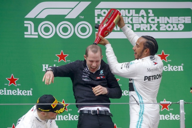 Hamilton firmó su sexta victoria en China, en la carrera número 1.000 de la historia de la categoría reina del automovilismo, en la que adelantó en la salida a su compañero Valtteri Bottas (segundo), quien salía desde la 'pole' y finalmente fue segundo.