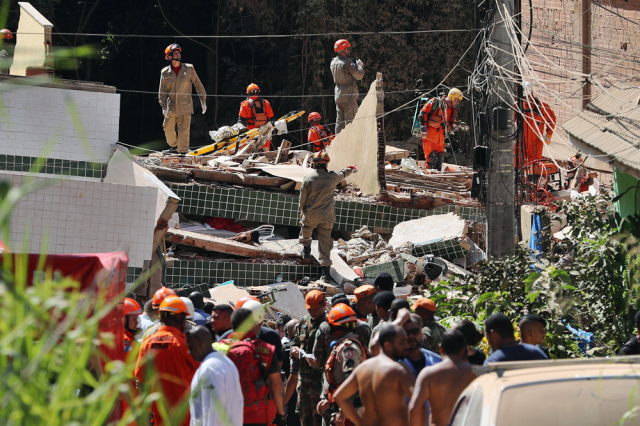 Un centenar de bomberos se encuentran de manera ininterrumpida desde el último viernes en el lugar de la tragedia, en el barrio de Muzema, en la zona oeste de Río, y cuentan con el auxilio de perros rastreadores, drones y máquinas, con la esperanza de encontrar más supervivientes.