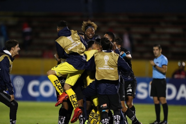 El atacante Alejandro Cabeza, del equipo ecuatoriano, abrió la ruta de la victoria, al minuto 7, y el defensa Yiemar Gómez, marcó en su propia meta, al 55, para dejar la serie igualada, ya que el onceno argentino había ganado por 2-0 el partido de ida.