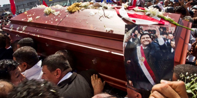 Los restos del líder del movimiento que fundó en los años veinte del siglo pasado el ideólogo Víctor Raúl Haya de la Torre, fueron rodeados por una multitud que coreaba el tradicional lema "El Apra nunca muere" y "A más ataques, más aprismo".