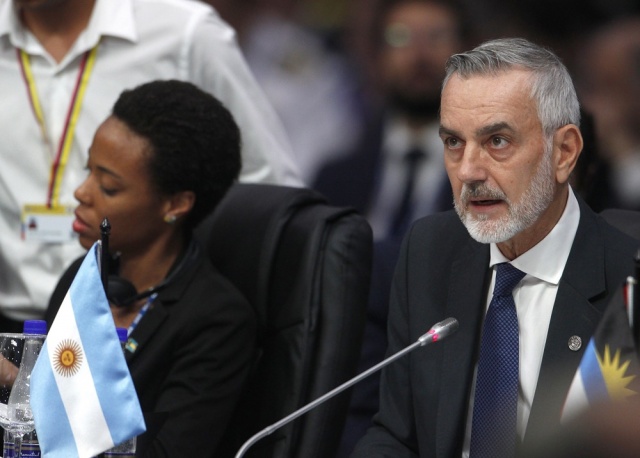 El diplomático reiteró los "legítimos derechos de soberanía" de Argentina "sobre las Islas Malvinas, Georgias del Sur y Sandwich del Sur y sus espacios marítimos circundantes", así como la necesidad de encontrar una "solución pacífica y definitiva a esta prolongada disputa".