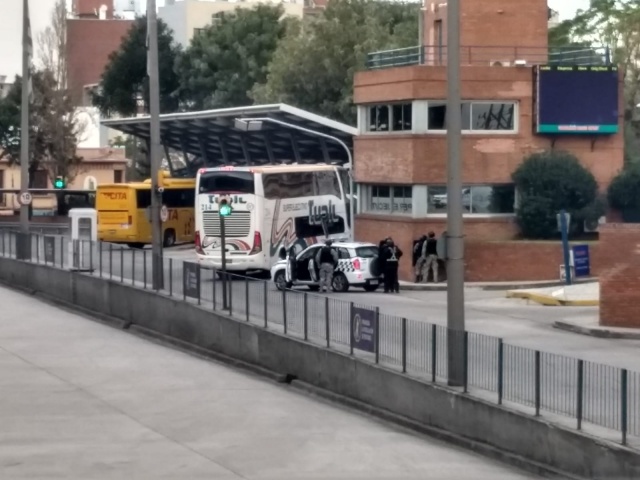 Tres Cruces - culminada la inspección por equipos especiales de la Policía no se encontró a persona alguna en el interior del ómnibus de la empresa de transporte interdepartamental. Culminando el cierre de la terminal la que retoma su actividad normal.