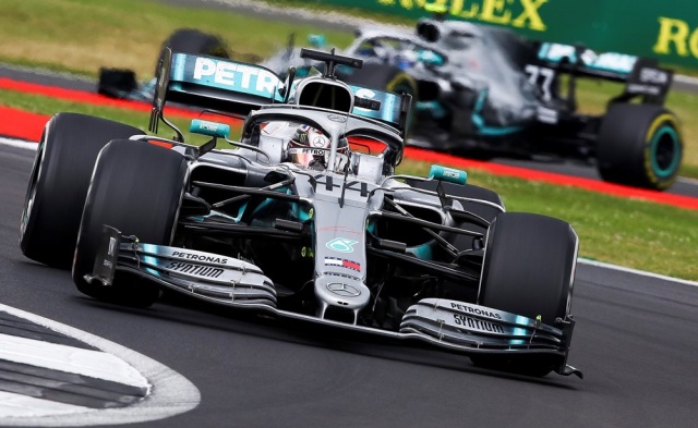 Hamilton, que buscaba superar a Alan Prost como piloto con más victorias en Silverstone, arriesgó en la cuarta vuelta con un adelantamiento en la curva 6 que ponía en pie a sus seguidores. Pero, pocos virajes después, su compañero le devolvió con la misma moneda para volver a tomar las riendas de la carrera.