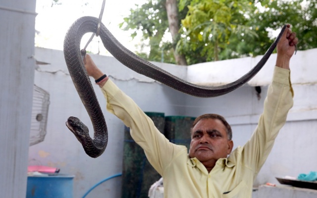 Pero esas "experiencias próximas a la muerte y el estremecimiento que produce atrapar a las serpientes" no han detenido a Saleem, que ejerce como único cazador de serpientes de la Corporación Municipal de Bhopal.