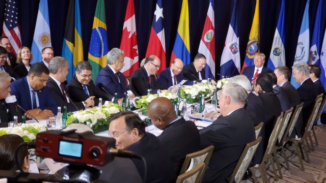Sin la presencia de Maduro, que viajó a Rusia, ni del líder opositor Juan Guaidó, reconocido como presidente interino por más de cincuenta países, el protagonismo lo cobraron los países americanos que se reunieron con el presidente de Estados Unidos, Donald Trump, para abordar la situación.