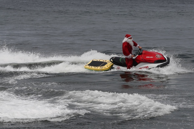 Papá Noel sustituyó el trineo por una moto acuática en Río de Janeiro