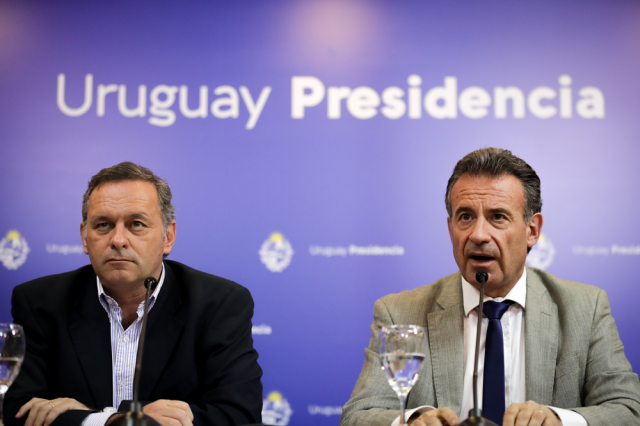 El secretario de Presidencia, Álvaro Delgado; el prosecretario, Rodrigo Ferrés; el ministro de Salud Pública, Daniel Salinas; y el subsecretario de esa cartera, Mario Arizti, ofrecieron una rueda de prensa para ampliar las medidas del plan anunciado por el presidente, Luis Lacalle Pou, quien decretó "emergencia sanitaria" de manera preventiva.