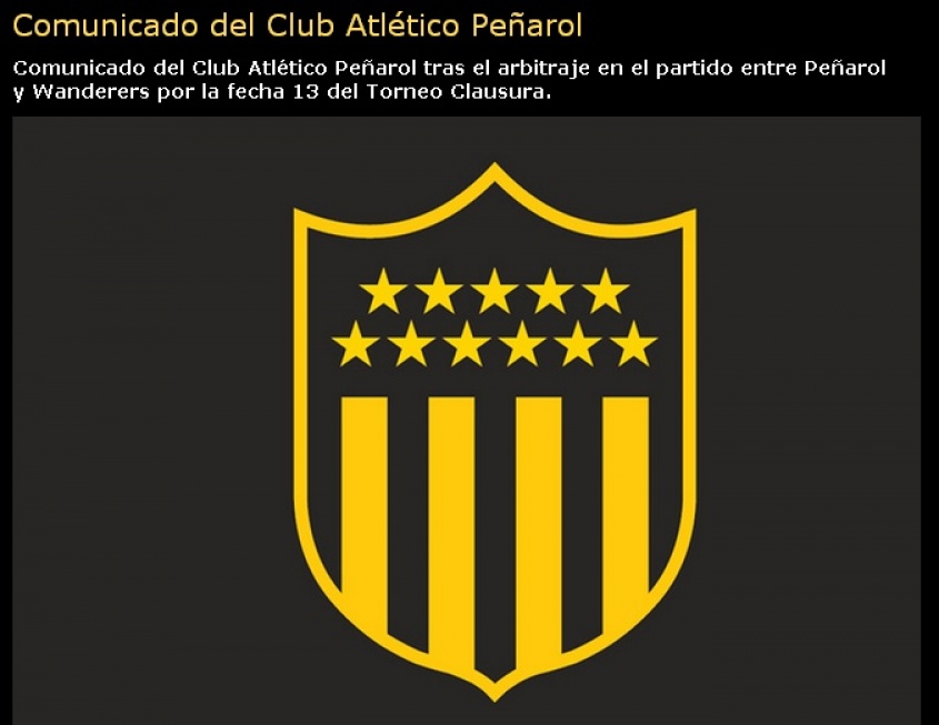 Foto: Impresión de pantalla de página oficial de Peñarol