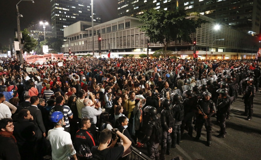 Más de 5.000 mujeres se manifestaron en el centro de Sao Paulo, y varios centenares más en ciudades como Porto Alegre o Rio de Janeiro, que acogerá los Juegos Olímpicos en dos meses.