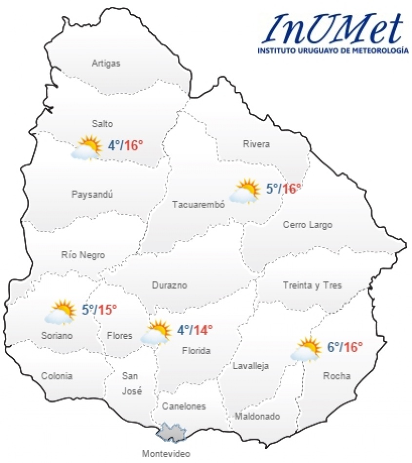 En Montevideo y el Área Metropolitana, este viernes se presentará frío a fresco con cielo nuboso y periodos de cubierto.