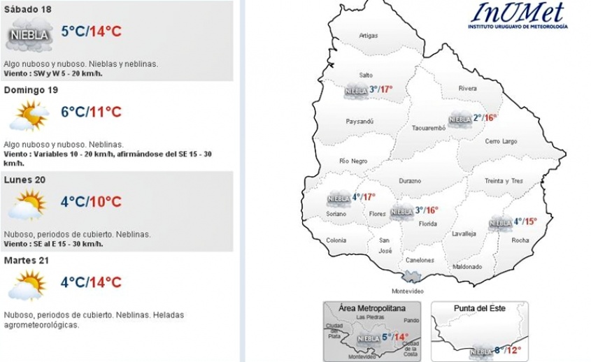 En el resto del país también se prevé formación de Nieblas pero de menor duración.