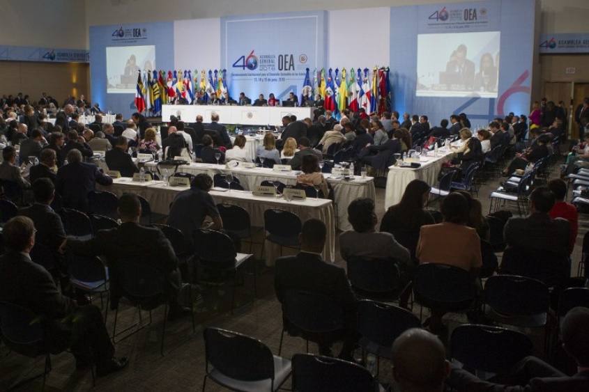 La canciller venezolana, Delcy Rodríguez, había dicho antes que con la celebración de esa sesión "se está dando un golpe de Estado en esta organización", tachando a Almagro de ser "parte y juez" de un proceso contra el gobierno del presidente Nicolás Maduro.