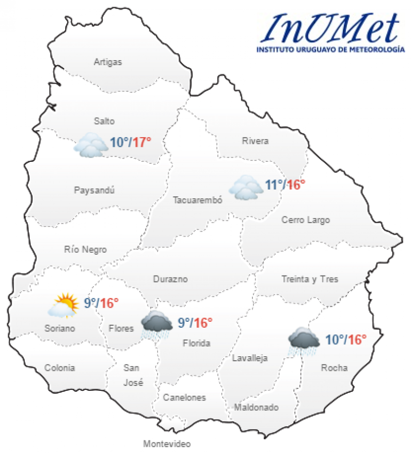 En el sur según el Instituto Uruguayo de Meteorología, en Montevideo y el Área Metropolitana, este martes 12 se presentará frío a fresco con cielo cubierto, probables precipitaciones en la mañana a nuboso.