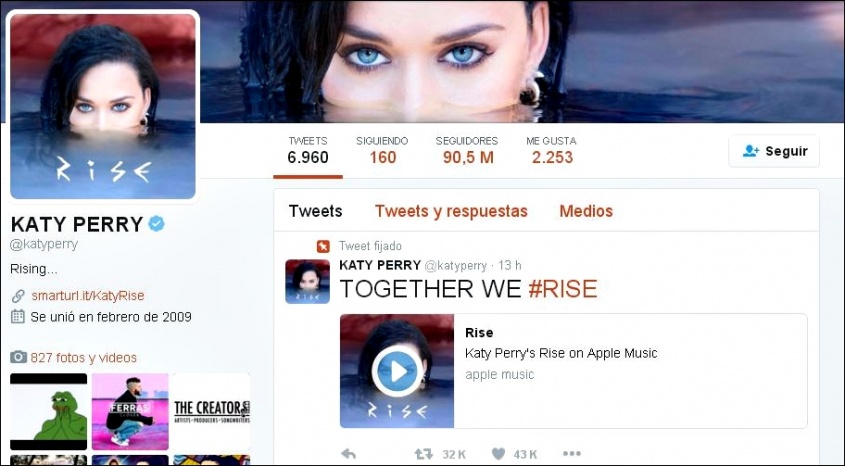 La popular cantante estadounidense Katy Perry hizo público su nuevo single, llamado 'Rise' que será uno de los temas oficiales de estos Juegos Olímpicos de Río de Janeiro 2016.