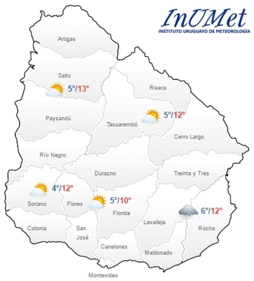 En Montevideo y el Área Metropolitana se espera tiempo frío con cielo nuboso, periodos de cubierto. Baja probabilidad de precipitaciones escasas.