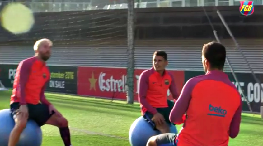 Una pelota, un amigo, y habilidades de cabecera locos, dice el club catalán en la red social