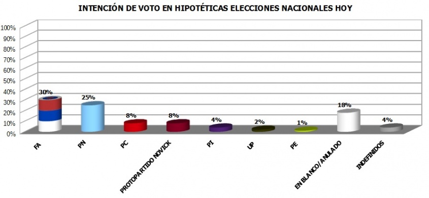 Si este domingo se realizaran elecciones el Frente Amplio recogería un 30%, el Partido Nacional 25% y el Partido Colorado 8%.