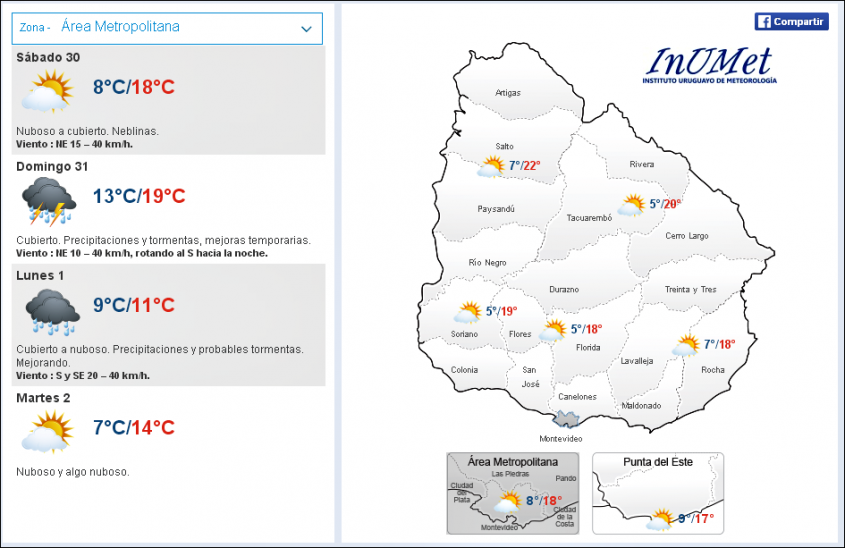 Este sabado en cambio, estará nuboso con una máxima de 18 grados en el sur y de 22 en el norte