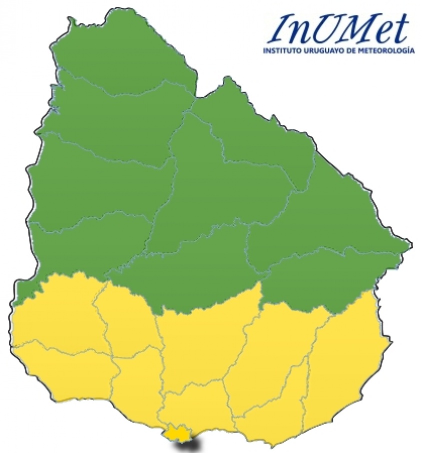El INUMET actualizará esta advertencia a las 22 horas y se espera que en la noche de hoy, este sistema comience a avanzar del SW hacia el Norte y Este del territorio.