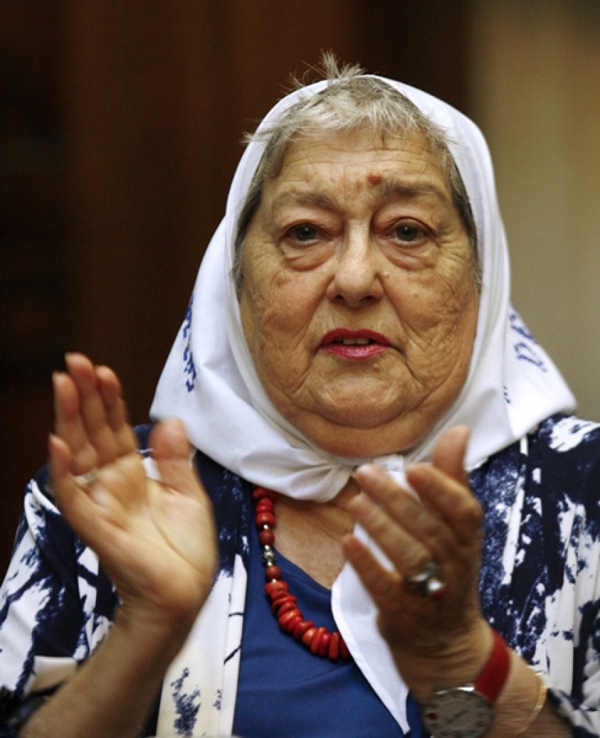 "Si me tienen que meter presa, que me metan", desafió la veterana activista apoyada por una multitud en la plaza de Buenos Aires, donde marcha desde hace 40 años pidiendo justicia por sus hijos desaparecidos en la dictadura argentina (1976-83).