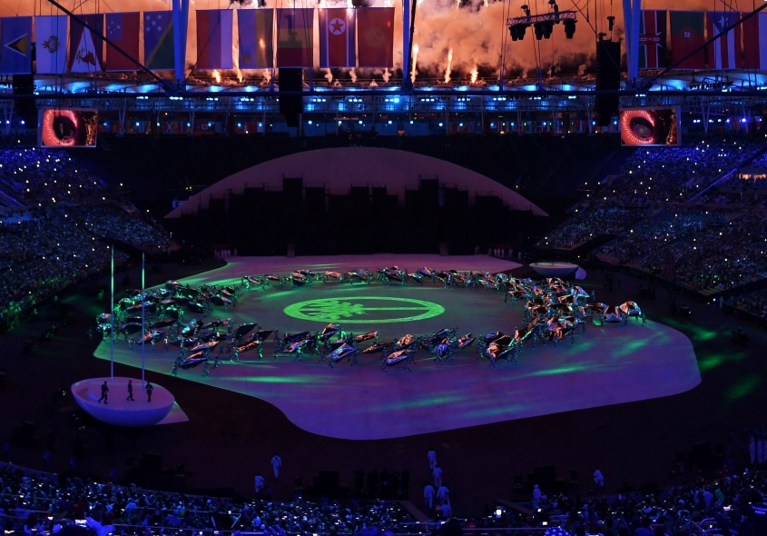 La fiesta inició con la presentación del presidente del Comité Olímpico Internacional, Thomas Bach, y luego el cantante popular Gilberto Gil y Paulinho Da Viola entonaron el himno brasileño.