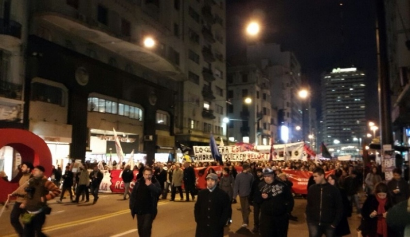 Los gremios de la educación se movilizaron hacia el Palacio Legislativo luego de concentrar en la explanada de la Facultad de Derecho en rechazo del recorte para la enseñanza previsto en la Rendición de Cuentas.