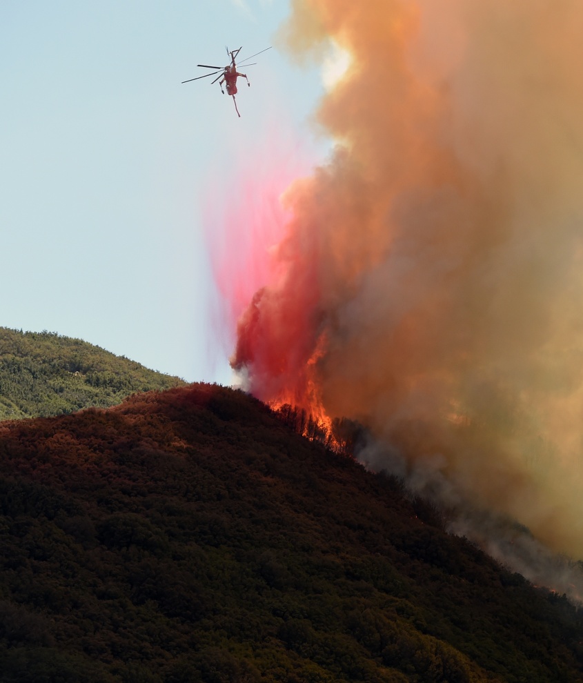 En California, el fulgurante incendio Blue Cut en las montañas del bosque nacional Angeles, a 150 kms al este de Los Angeles, tomó 15.000 hectáreas de arbustos y vegetación en tres días y solamente estaría controlado en un 26%.