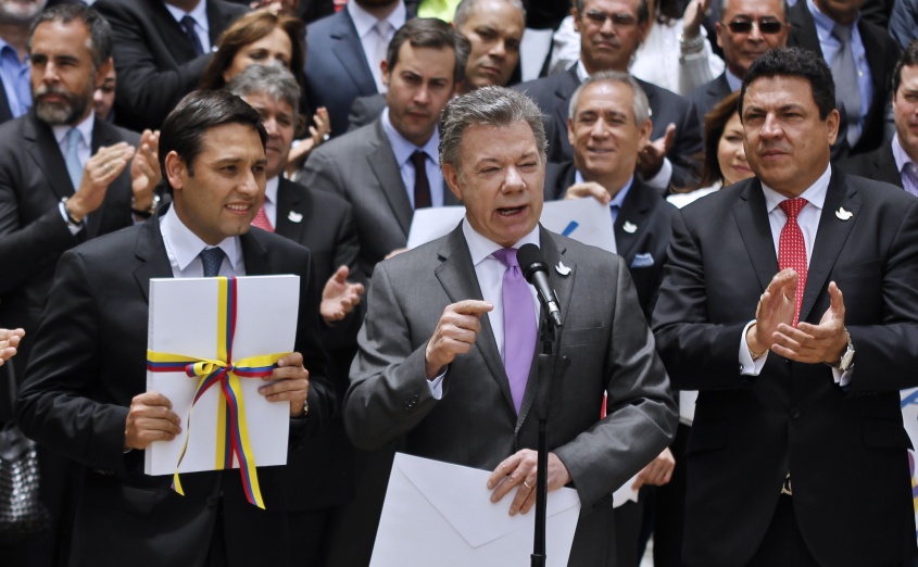 Santos, un político de centroderecha que ha apostado todo su capital político a la pacificación del país, entregó al presidente del Senado, Mauricio Lizcano, el texto de 297 páginas del acuerdo, que ya ha sido publicado por el gobierno.