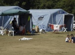 Bajo una gran carpa gris claro, los niños se sienten seguros.