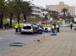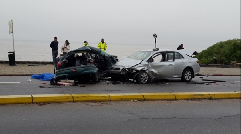 Un auto que venía por la rambla en dirección al centro de Montevideo perdió el control, cruzó de senda e impactó de frente con un remise que iba hacia el este.