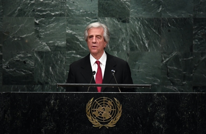 Vázquez estuvo acompañado por el ministro de Economía y Finanzas, Danilo Astori, quien forma parte de la delegación de regreso de Nueva York junto a otras autoridades.