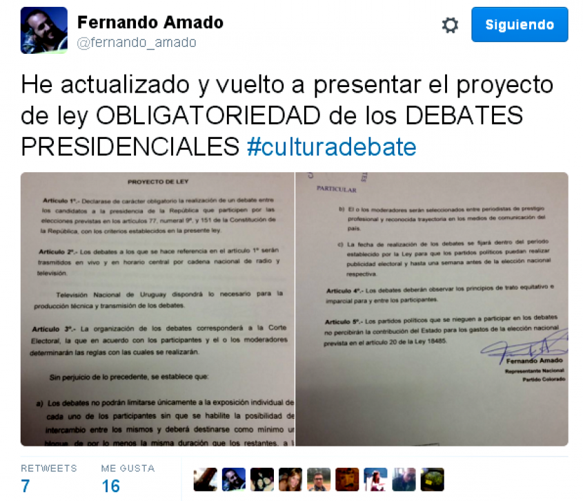 Aquí dejo el proyecto de ley que volví a presentar sobre OBLIGATORIEDAD de los DEBATES PRESIDENCIALES. Ojala haya voluntad política! https://t.co/LaOY6QkTe3