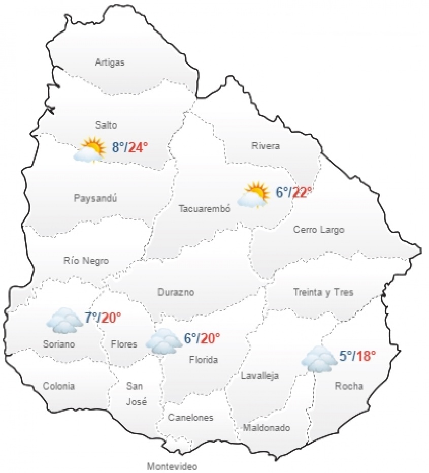 Para Montevideo y Área Metropolitana se prevé tiempo frío a fresco con cielo nuboso y cubierto. Probables precipitaciones aisladas. Mejorando.