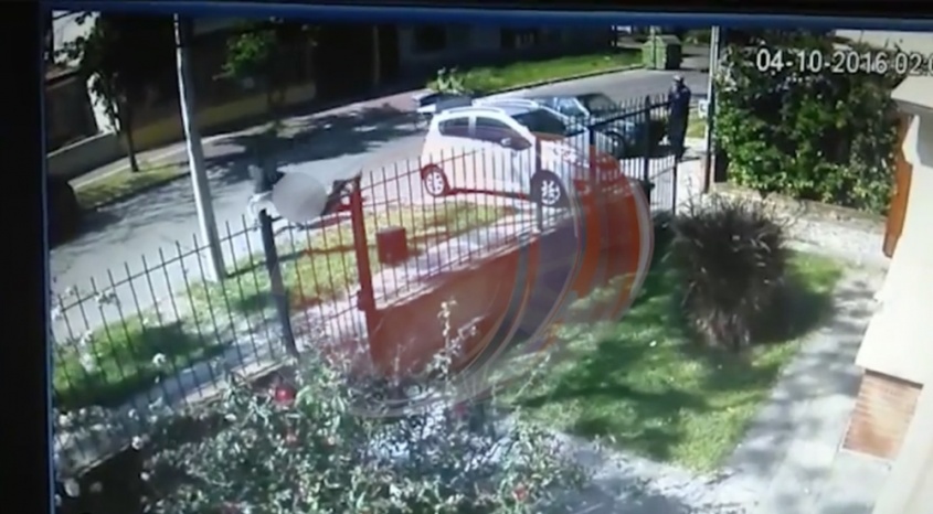 Antes del robo, y según se ve en el video de la cámara de seguridad de la casa, los delincuentes tapan la matrícula de la moto con una media.
