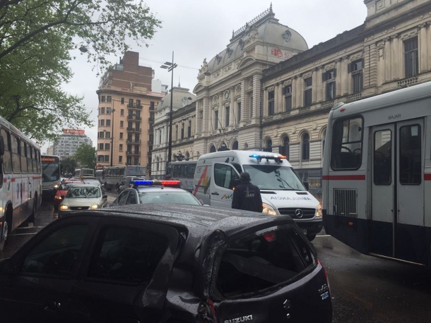 Mientras tanto en el centro de Montevideo se registró un siniestro entre un auto y un ómnibus frente a la Udelar.