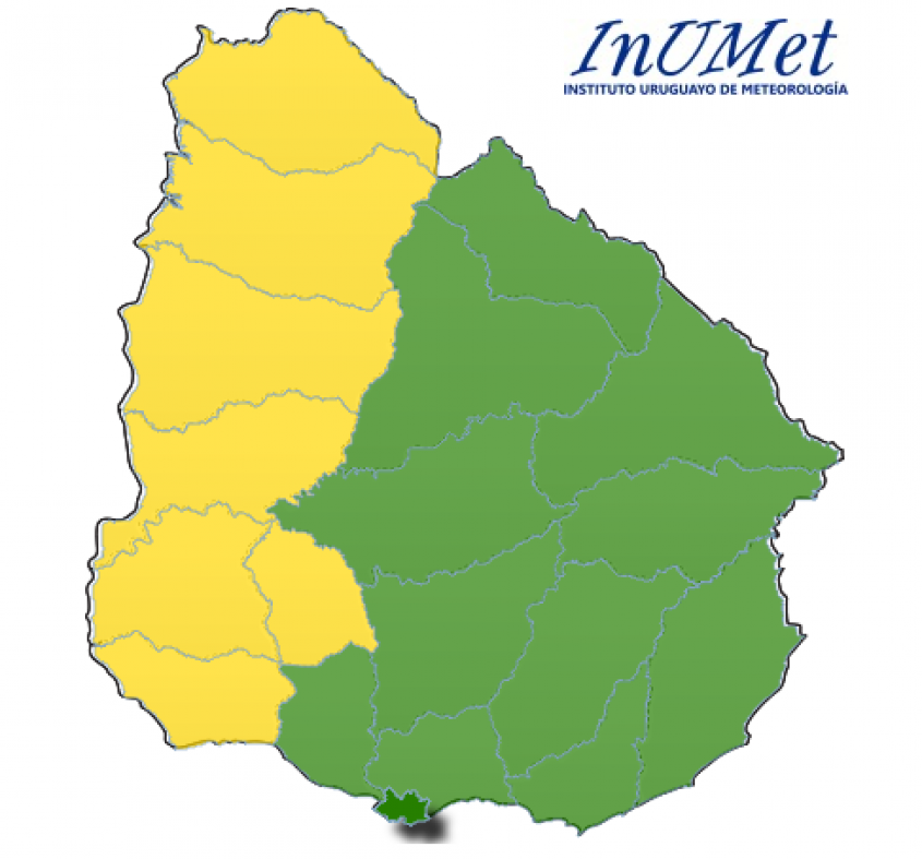 El INUMET informa que la zona afectada comprende a los departamentos de Artigas, Salto, Paysandú, Río Negro, Colonia, Soriano y Flores, hasta la hora 21.