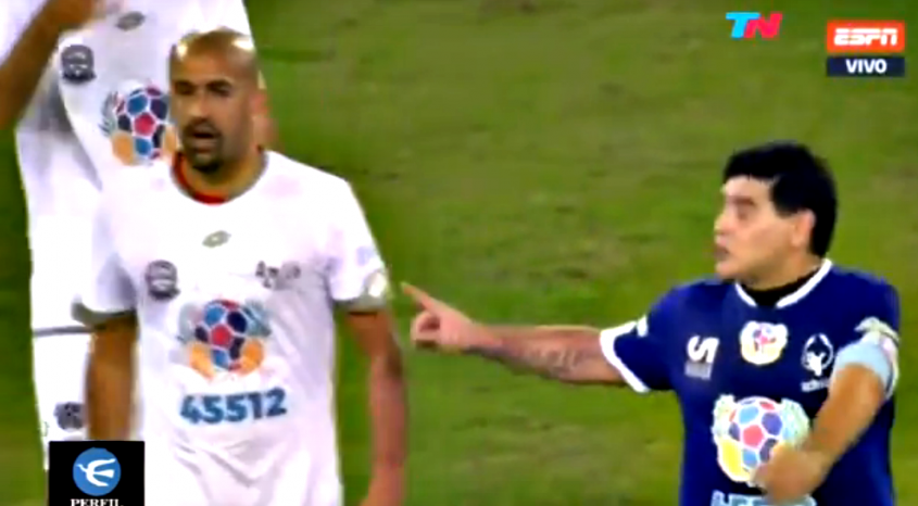 Diego Maradona se enfrentó a Juan Sebastián Verón durante el partido por la Paz que se disputó en Roma
