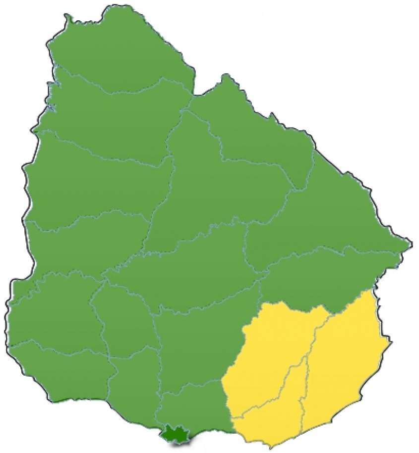 Los departamentos afectados son Lavalleja, Maldonado y Rocha bajo nivel de riesgo amarillo.