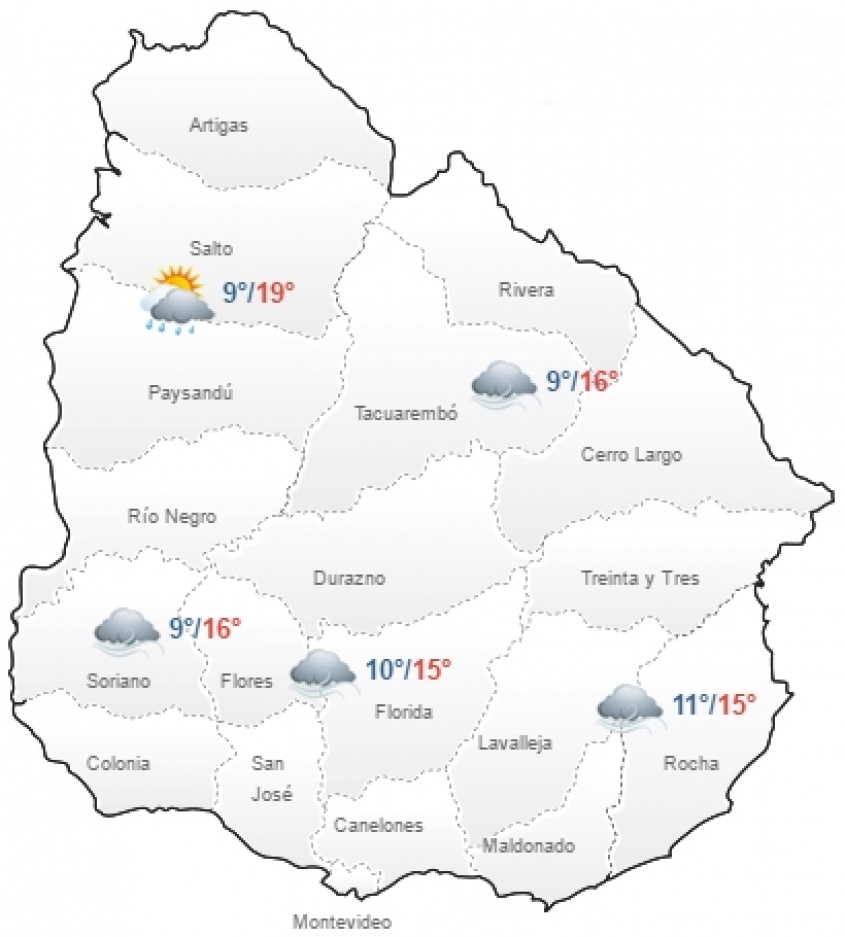 En Montevideo y Área Metropolitana se prevé tiempo fresco, ventoso. Cielo nuboso y cubierto. Precipitaciones, mejorando.