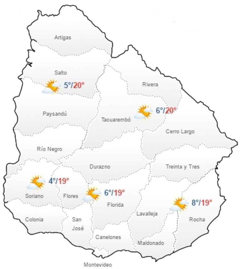 La mínima anunciada 5°C y la máxima 20°C, con vientos del sector Sur, entre 10 y 30 km/h.