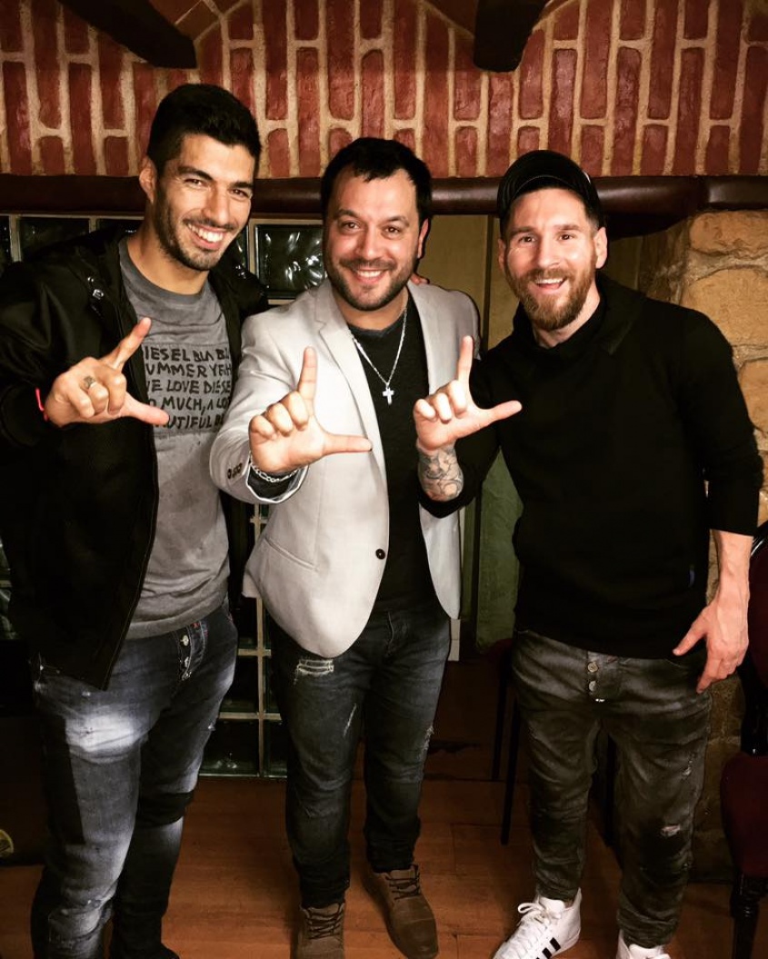 Entre las personas que acompañan al artista líder en la música tropical uruguaya, se encuentran nada más y nada menos que Luis Súarez y Lionel Messi.