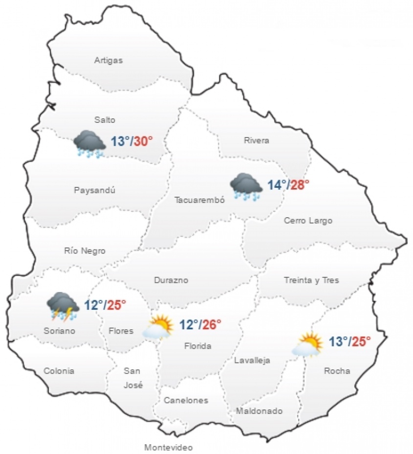Para Montevideo y Área Metropolitana pronostican tiempo fresco a templado con cielo nuboso y cubierto. Probables precipitaciones y tormentas aisladas.