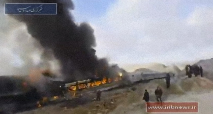 Dos vagones del tren Tabriz-Mashhad se incendiaron y cuatro vagones del otro tren descarrilaron, según las imágenes difundidas por la televisión.