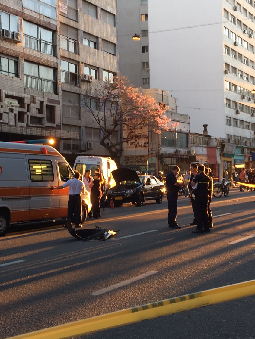 Al llegar a 18 de Julio, la ambulancia impactó contra una moto que cruzaba habilitada por la luz verde del semáforo. Luego, el móvil de emergencia médica cruzó de senda y chocó contra un taxi que transitaba en sentido contrario.
