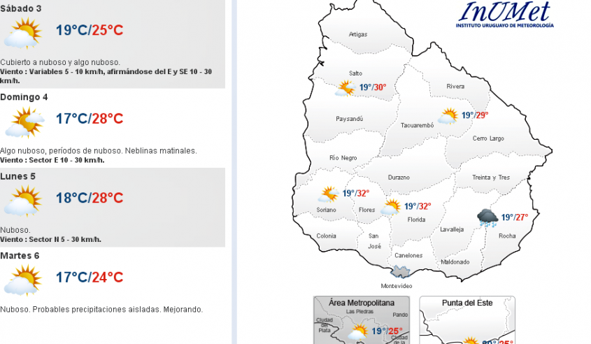 Algo nuboso, períodos de nuboso. Neblinas matinales.
